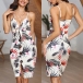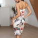 Sexy Backless V-neck Slit Hem Slim Fit Printed Sling Dress