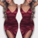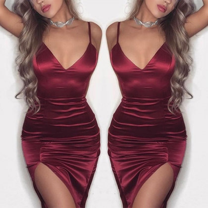 Sexy Backless V-neck Slit Hem Slim Fit Sling Dress