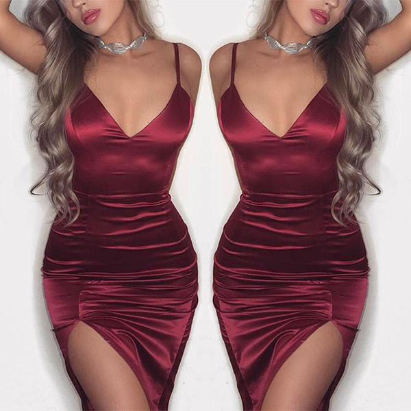 Going with some stunning details such as see-through backless,v-neck,slit hem and a super fit silhouette, this sultry sling dress is a definite piece which can help you grab more attention and appeal. For your night events,this little stunner would be your perfect partner!