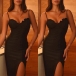 Sexy Backless V-neck Slit Hem Slim Fit Sling Dress