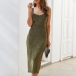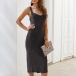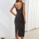 Sexy Backless V-neck Slit Hem Slim Fit Sling Dress