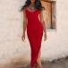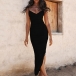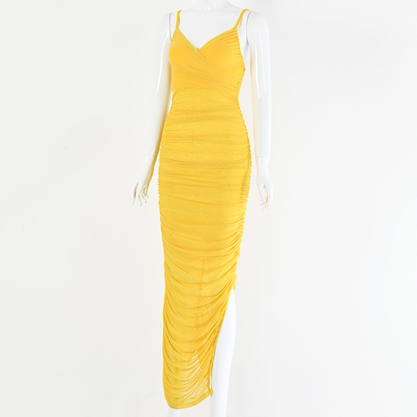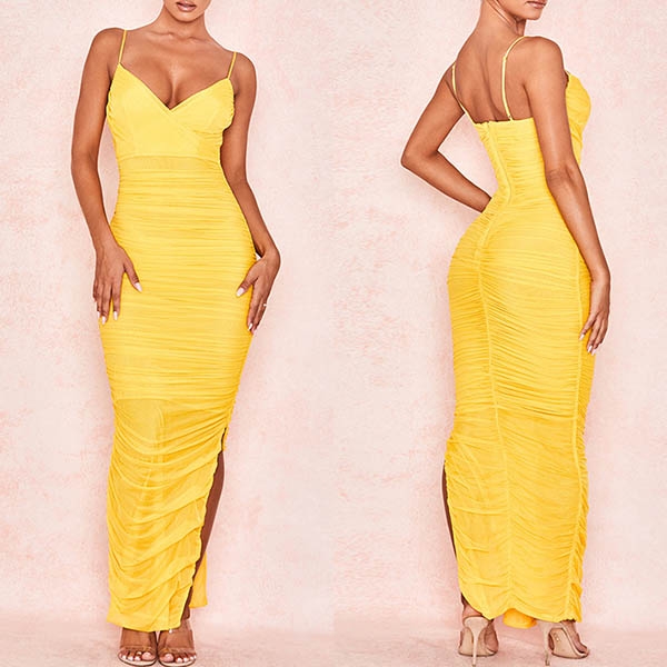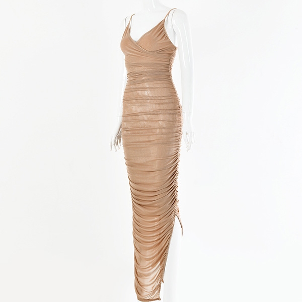 Sling style,with backless,v-neck,slit hem and a fit silhouette,this dress can help you win