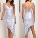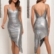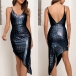 Looking for a dress that is versatile for your fancy events like wedding parties,cocktails parties and son on? Then look no further than this piece! This sling sequin dress is outfitted with backless,deep v-neck,slit hem and a fit silhouette,sexy and alluring. No matter when and where you are,you can easily arouse a splash when you don this dress.