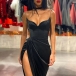 There is no doubt that you can easily arouse a splash when you don this dress. Sling style,with backless,v-neck and slit hem design,sexy and alluring. When matching with your sexy heels,elegant clutch and rouged lips,your charm would be outmatched!