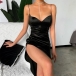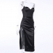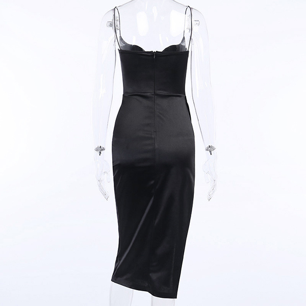 Sexy Backless V-neck Slit Hem Solid Color Sling Dress