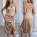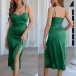 Sexy Backless V-neck Slit Hem Solid Color Sling Dress