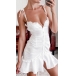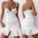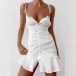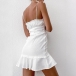 Sexy Backless V-neck Slit Ruffle Hem Solid Color Slim Fit Sling Dress