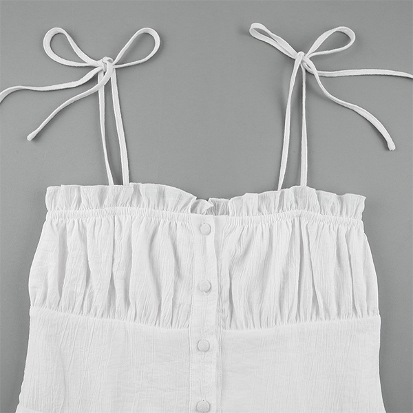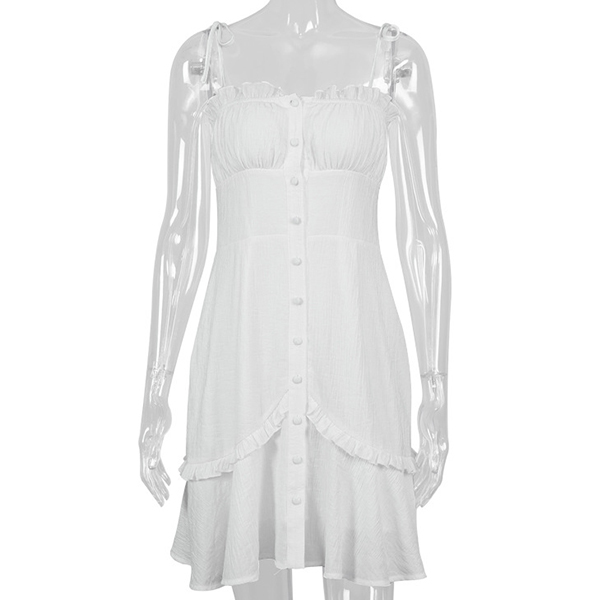Hey,girls,you can trust in this dress to be your secret weapon to express your beauty and charm. Sling style,with backless,v-neck and ruffle hem design,these details make this piece look so alluring and flirty,while the fit silhouette design can portray your perfect figure and curve. Dress it up with your sexy heels and you can look beautiful enough!
