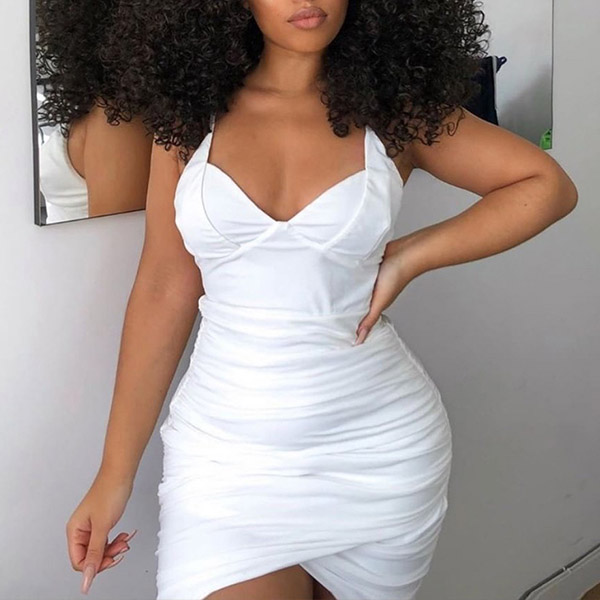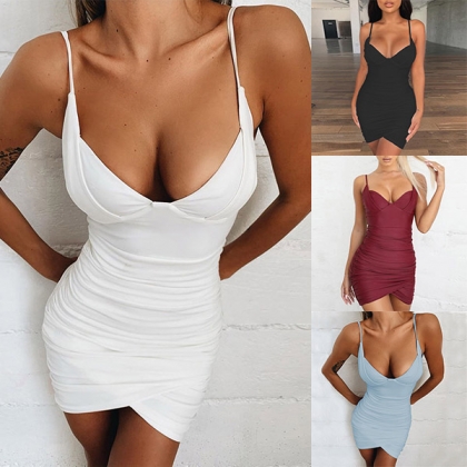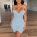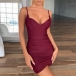 Sexy Backless V-neck Solid Color Slim Fit Sling Dress