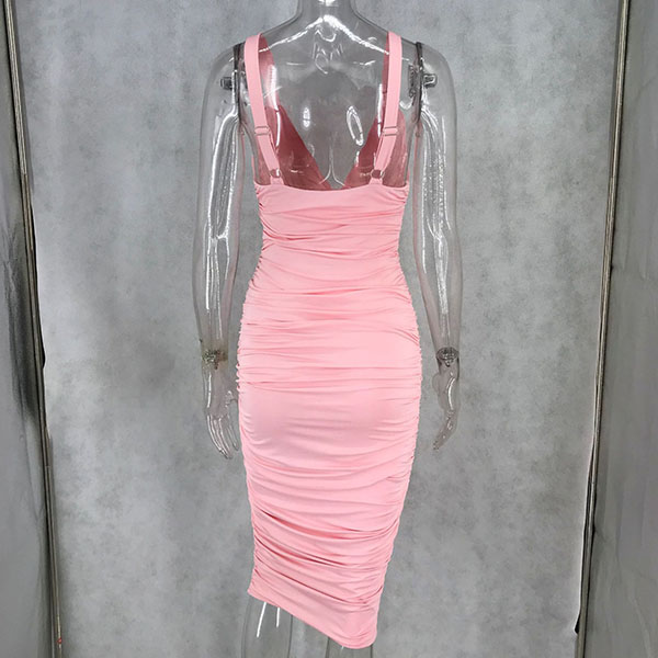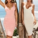 Sexy Backless V-neck Solid Color Slim Fit Sling Dress