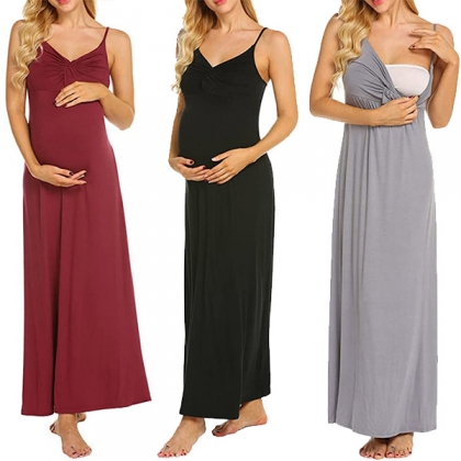 Sexy Backless V-neck Solid Color Sling Maternity Dress
