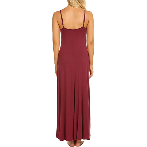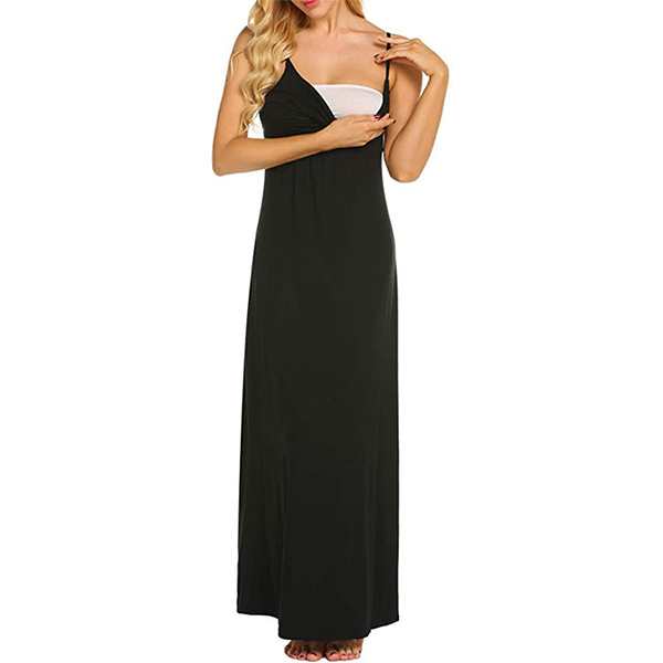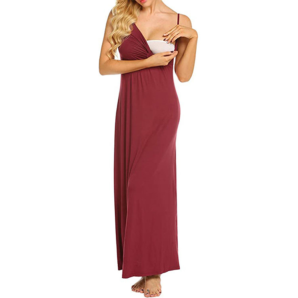 This dress features a solid color,which makes it look simple,generous and elegant. Sling style,with backless and v-neck design,sexy yet flirty. For these pregnant women,this dress is a good chance for them to express their beauty and femininity.