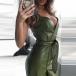Sexy Backless V-neck Solid Color Sling PU Leather Dress