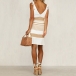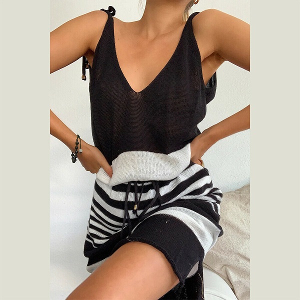 When it comes to an instant style definition,you can rest easy when you have this knit dress in your wardrobe. The stripe element can makes it look stylish and popular,while the backless,v-neck and sling design will offer you a sexier look. Embrace your wonderful day with this little piece.