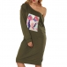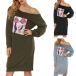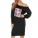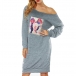 Sexy Boat Neck Long Sleeve Printed Sweatshirt Dress
