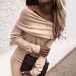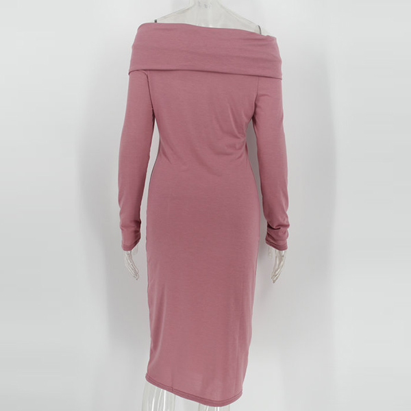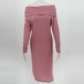 Sexy Boat Neck Long Sleeve Solid Color Slim Fit Dress