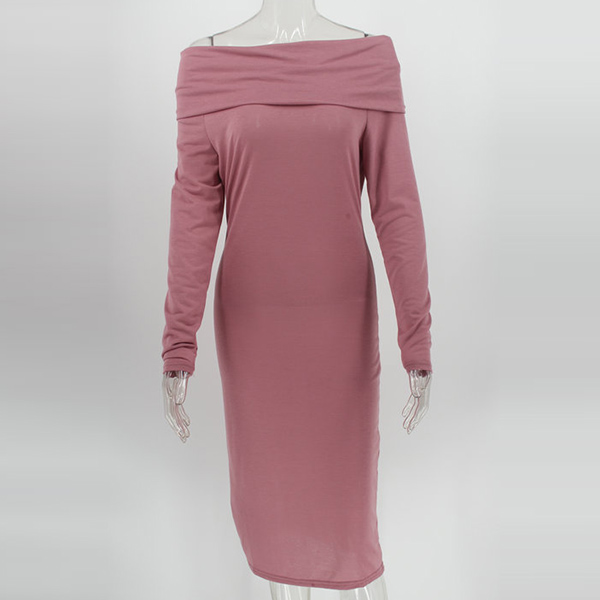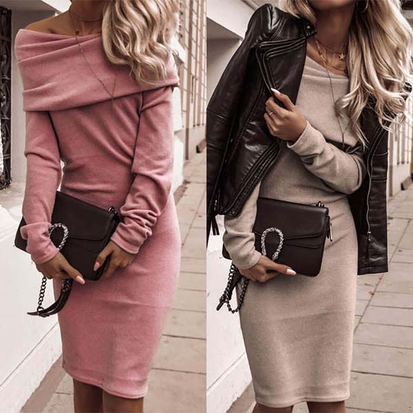 You can easily exude your charming feminine appeal through this dress. It features a solid color,the off-shoulder boat neck design can make you look sexy and flirty,while the fit silhouette design will demonstrate your slender figure. For your dinner dates or weekend gatherings,this dress can be your wise choice.
