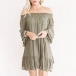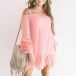 Sexy Boat Neck Lotus Sleeve Solid Color Loose Dress