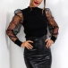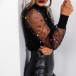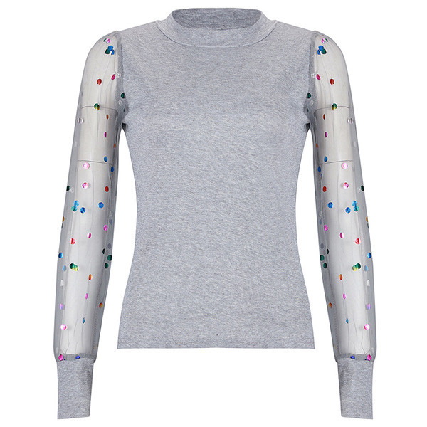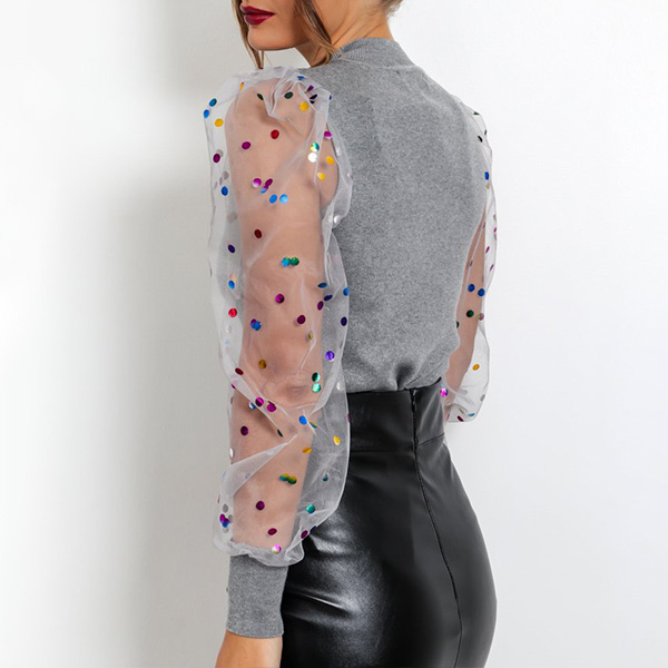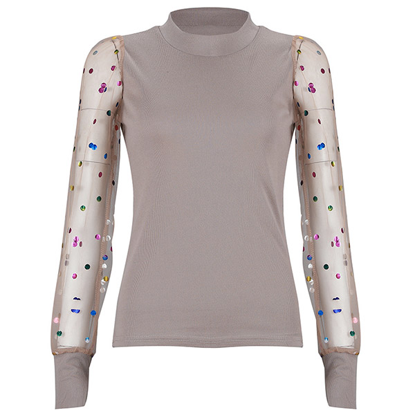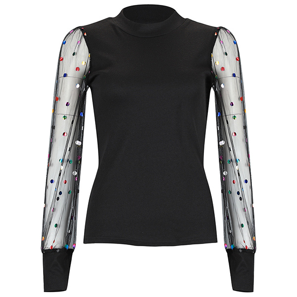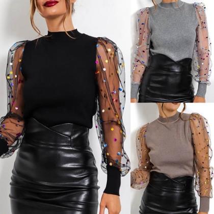 You can have a sexy and flirty look when you wear this wonderful top. The colorful dots details and gauze spliced long sleeve design make this piece look so attractive. Finished with long sleeve and mock neck design,this piece can offer you a beautiful look by teaming with your favourite bottoms.