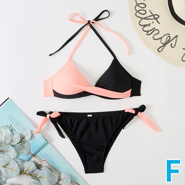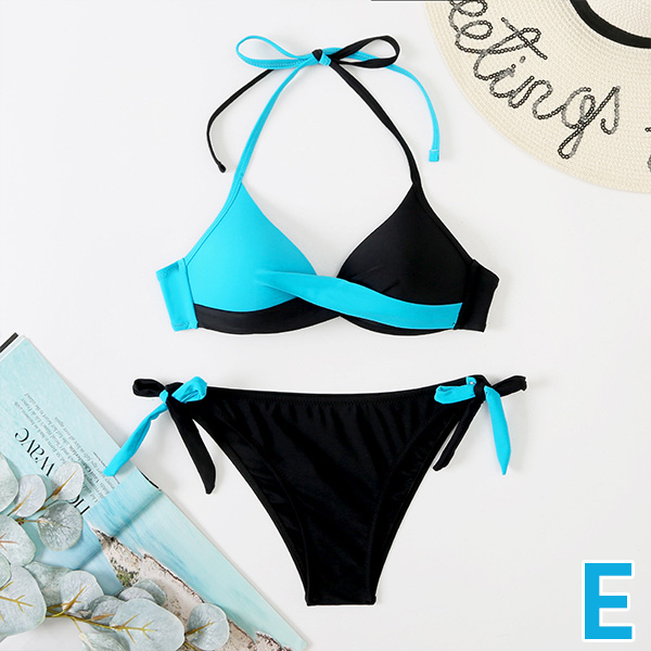 Sexig Halter Neck Bikini Set med kontrastfärg