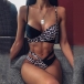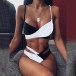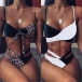 When invited to a bikini party,you are bound to be the most charming bikini girl if you wear this bikini set. Contrast color design makes it look more stylish. Including a high waist bikini top and a crossover bikini top,this bikini set is perfect fit for your beach days.