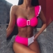 When invited to a bikini party,this sexy and distinctive bikini set can help you be the most stunning bikini girl. The contrast color printed details and one-shoulder ruffle design are the highlight,which make it look so attractive. Definitely you can add a body chain if you wanna look more beautiful.
