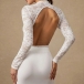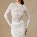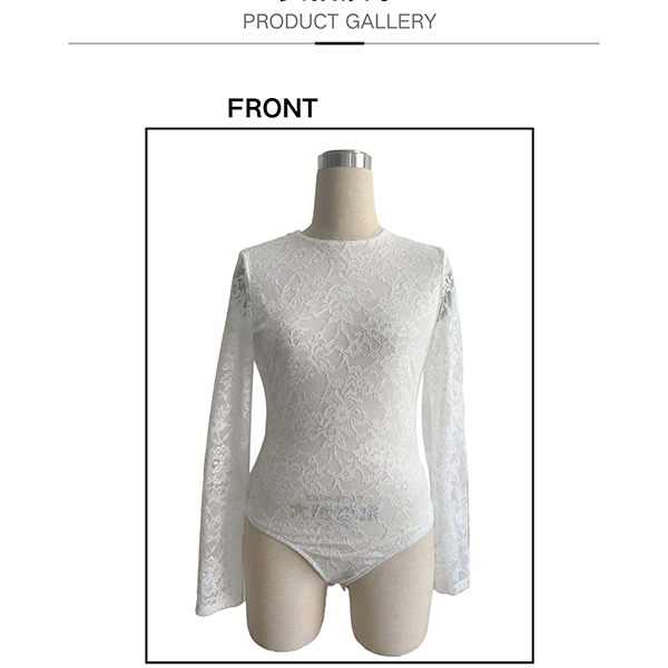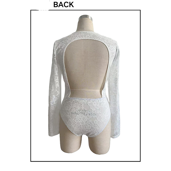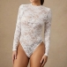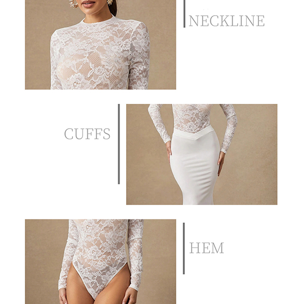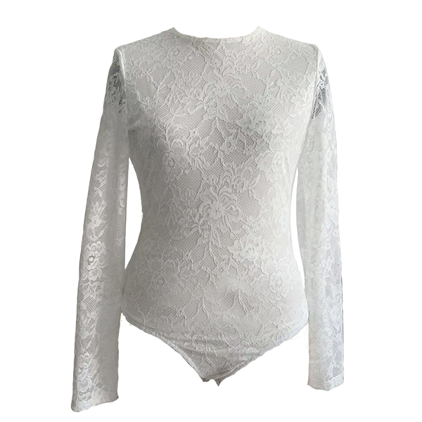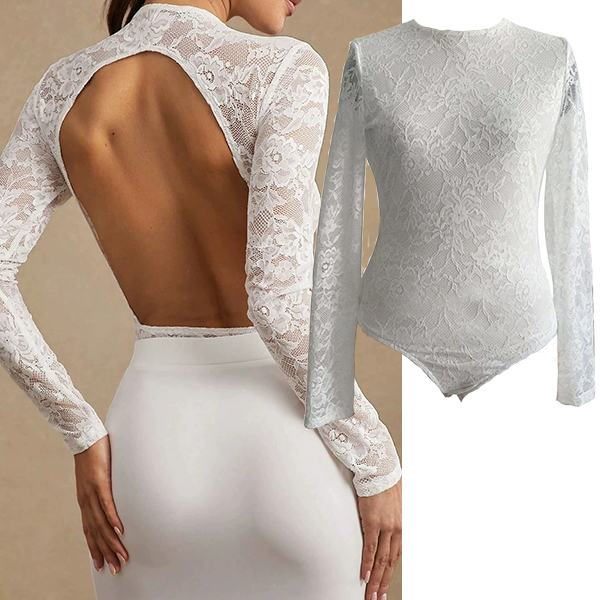 Spetsbody, sexig rund halsringning, ryggfri med långa ärmar, halvgenomskinlig