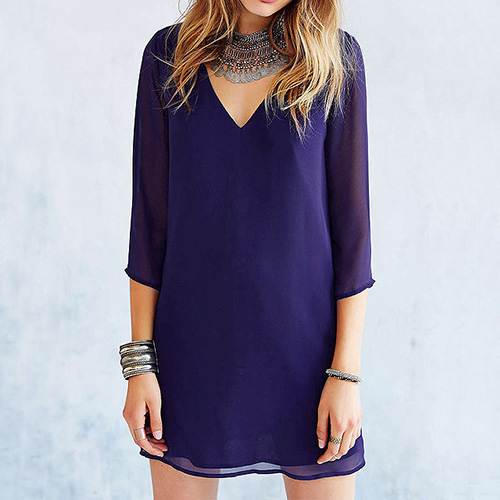 Featuring with deep V-back design, 3/4 semi sheer sleeves and solid color.