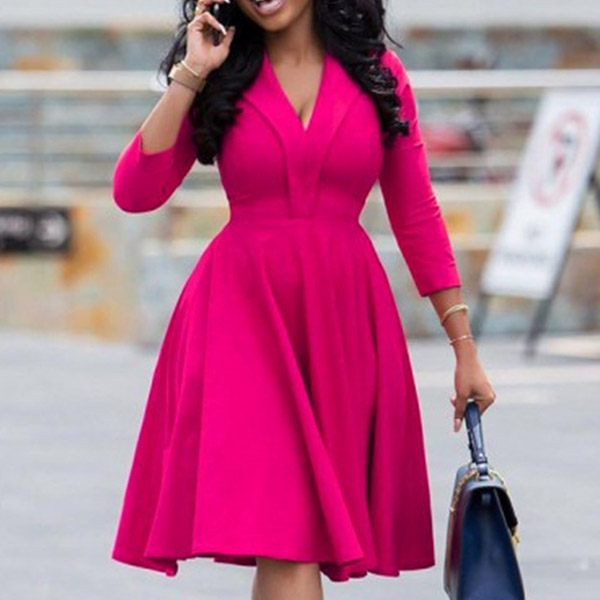 Flaunt your elegant and charming style with a well-tailored number and this gorgeous dress makes for the perfect example. Solid color tone design makes it look elegant yet generous,while the v-neck design will exude your feminine side. This is a dress which can fit for different occasions. So why not buy one?
