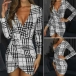 Sexy Deep V-neck Irregular Hem Long Sleeve Slim Fit Houndstooth Dress