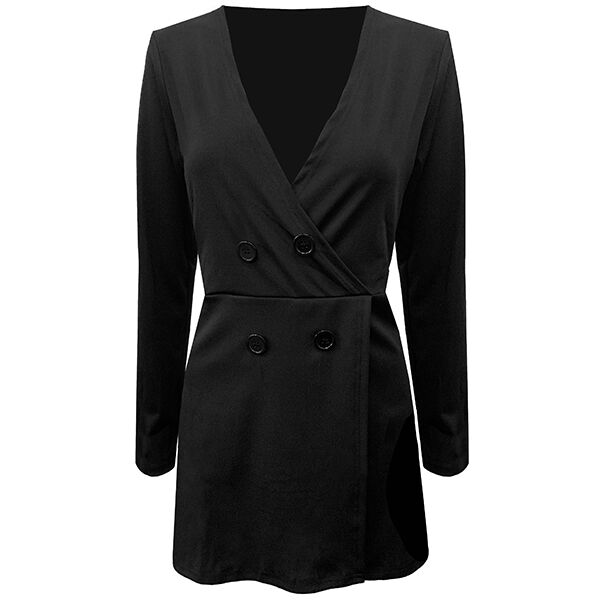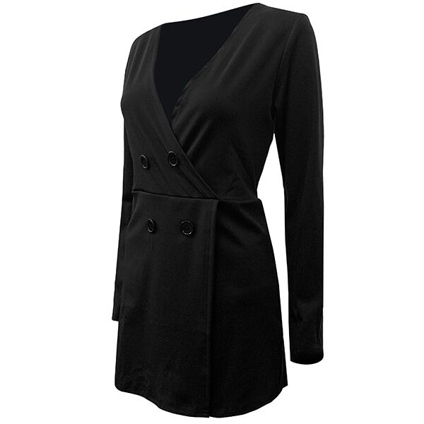 Lägg till en touch av sexig och lättsam personlighet till din garderob med denna byxa. Enfärgad stil, den djupa v-ringningen och den dubbelknäppta designen gör att denna pjäs ser så sexig och distinkt ut. Vid första anblicken kanske du tror att det är en klänning, men i själva verket är det en tröja. Så varför inte prova den här byxan för att uppdatera din stil?