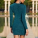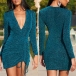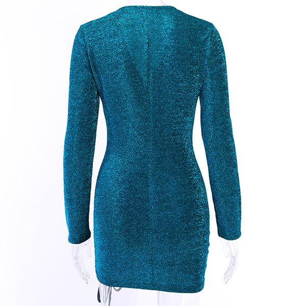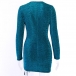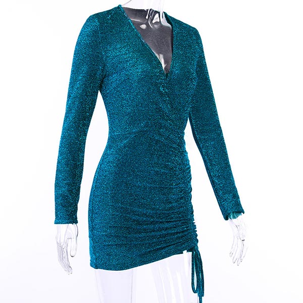 Sexy Deep V-neck Long Sleeve Drawstring Hem Slim Fit Dress