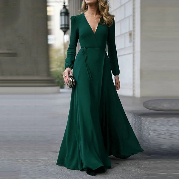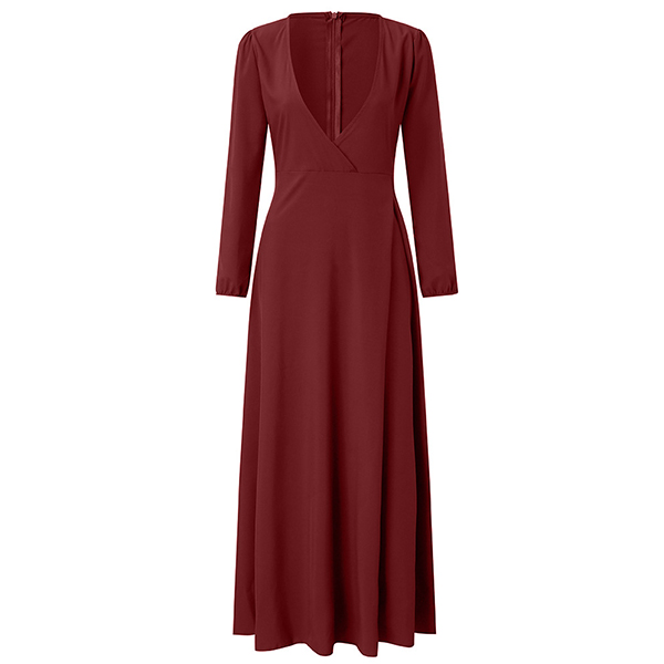 Every girl needs a sexy and feminine dress in her closet to take her to fancy events like wedding receptions and holiday parties,and this pretty number will do exactly that! It boasts a solid color,finished with long sleeve,deep v-neck,high waist and a maxi length,this dress knows how to portray your elegant and charming image!