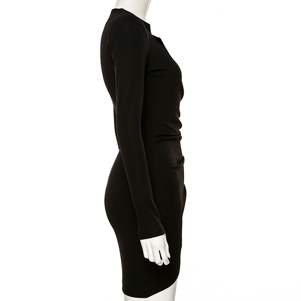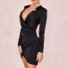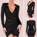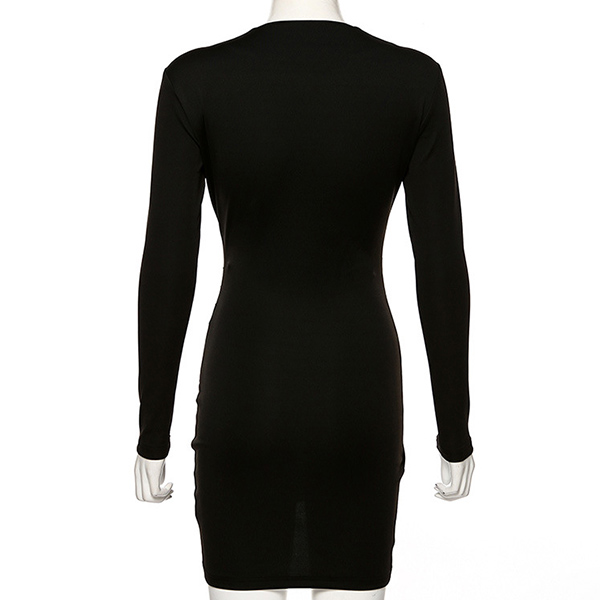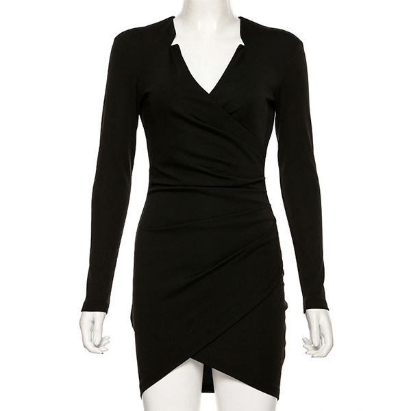 Sexy Deep V-neck Long Sleeve Irregular Hem Slim Fit Dress