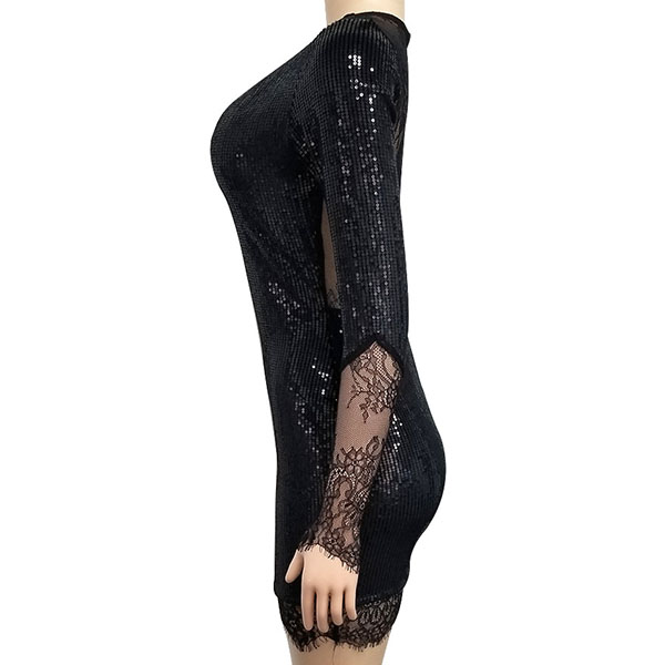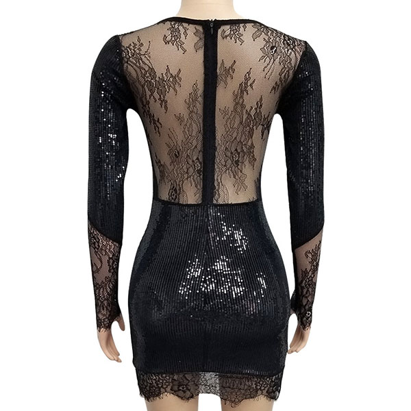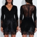 Sexy Deep V-neck Long Sleeve Lace Spliced Party Dress
