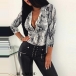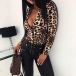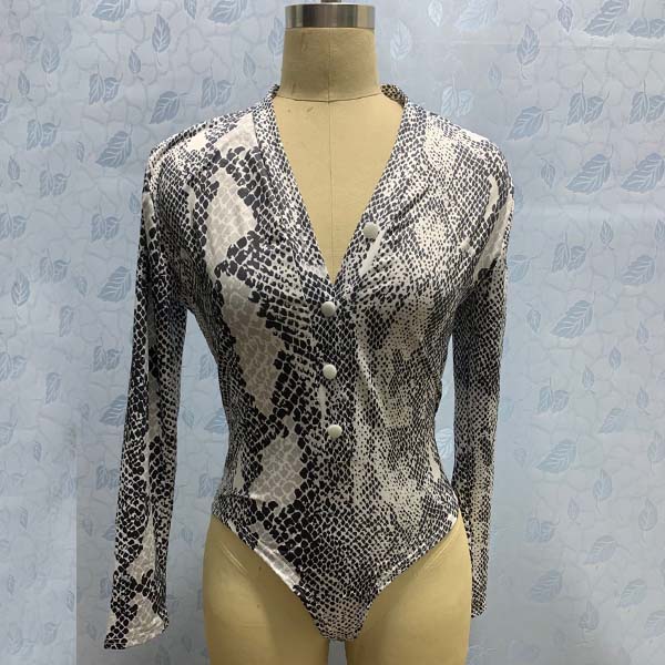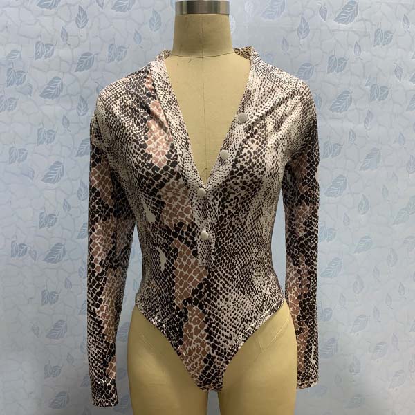 Sexy Deep V-neck Long Sleeve Leopard/Serpentine Printed Bodysuit