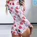 Sexy Deep V-neck Long Sleeve Printed Romper