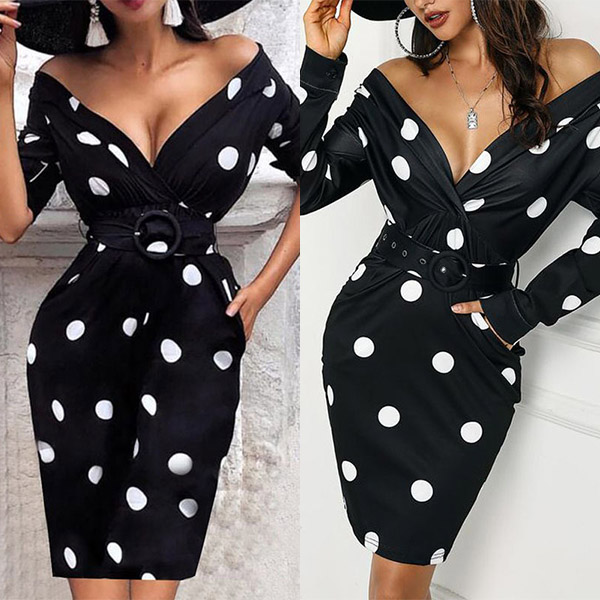 Portray your feminine image and charming style on the weekends when you're out for coffee or tea with this long sleeve dress! The dots printed details make it look so eye-catching,while the deep v-neck design can make you look sexier. You can add a necklace to boost your entire charm.