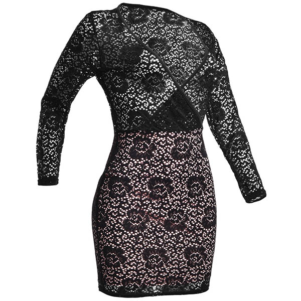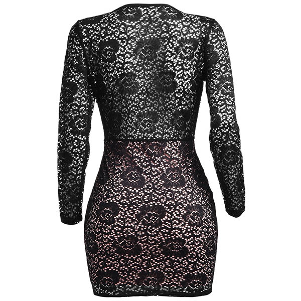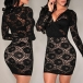 Sexy Deep V-neck Long Sleeve Slim Fit See-through Lace Dress