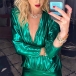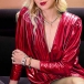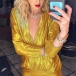 Sexy Deep V-neck Long Sleeve Solid Color Dress