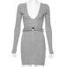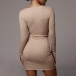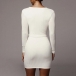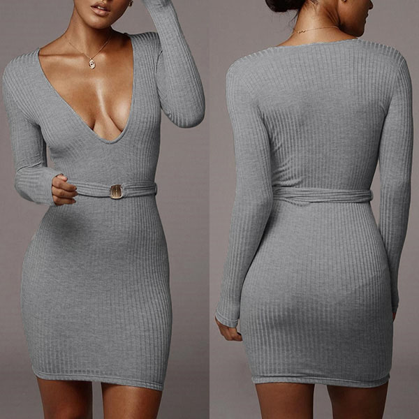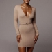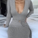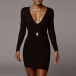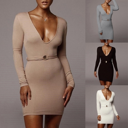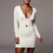 Sexy Deep V-neck Long Sleeve Solid Color Tight Dress