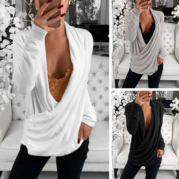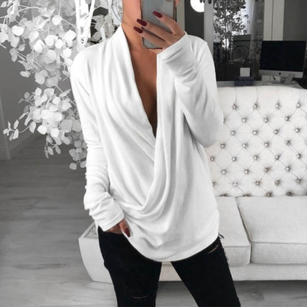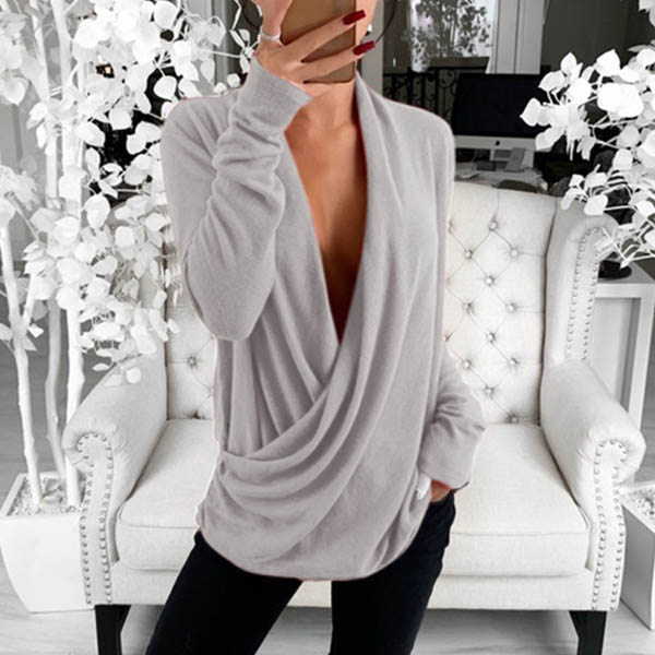 Sexig långärmad topp med djup V-ringning i enfärgad design