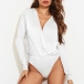 Djup V-ringad body med sexiga puffärmar i enfärgad design