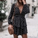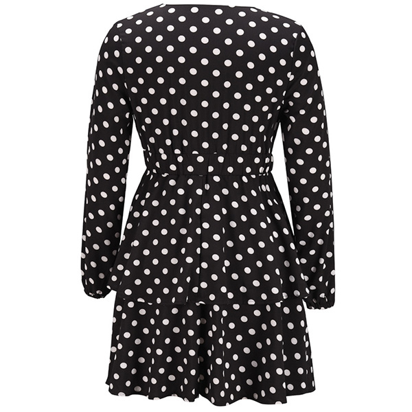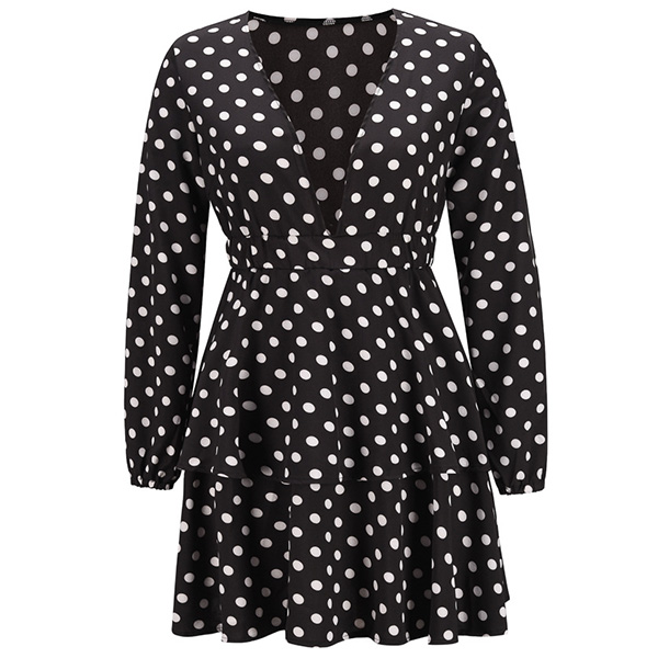 Designed with dots printed details,the deep v-neck and ruffle hem design make this piece look so sexy and flirty.