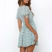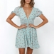 Sexy Deep V-neck Short Sleeve High Waist Printed Dress