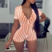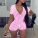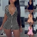 Sexy Deep V-neck Short Sleeve Slim Fit Striped Romper