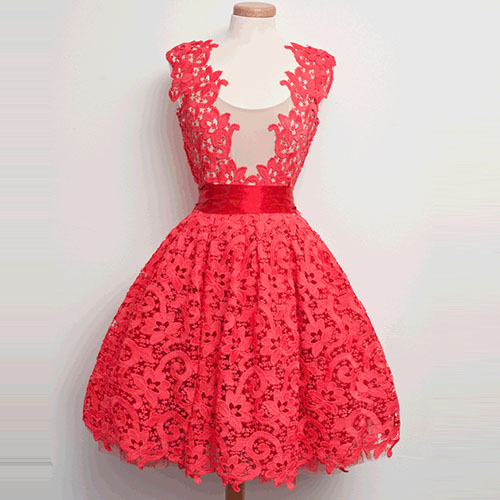 Hollow out lace design brings timeless elegance and sexy to this red lace dress.