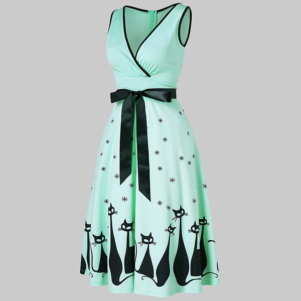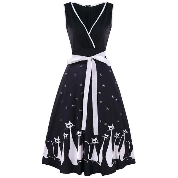 If you are looking for a proper dress for your dinner dates and weekend gatherings,you can just make your eyes focused on this sleeveless printed dress. The deep v-neck design can lend you a dash of sexy and feminine vibes,while the high waist with bow-knot waist strap design will make this piece look more attractive. You can trust in this dress to give you a sexy and sassy look!