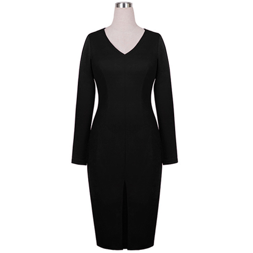 for this piece. Solid color style,its deep v-neck and slit hem design makes this dress so