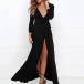 Where stylish,flirty and feminine vibes collide - this dress is just the thing you need for the fancy events. Comes a flattering black tone,the deep v-neck and slit hem design will make you look more alluring. We suggest you matching with your sexy heels and rouged lips for a stunning party look!